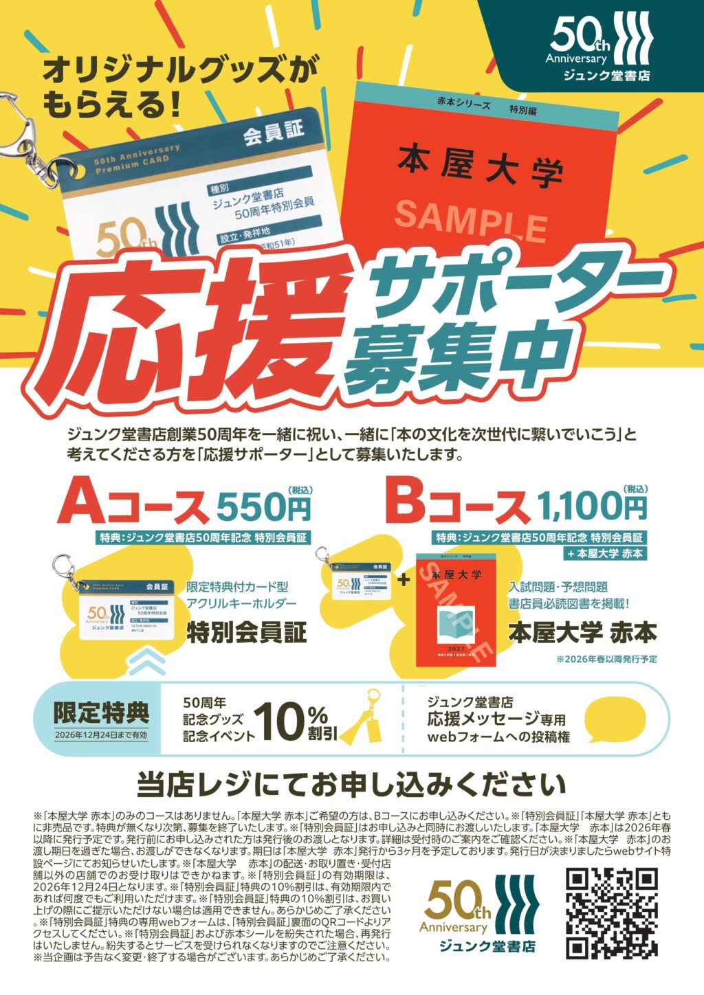 ジュンク堂書店 創業50周年「応援サポーター」募集中